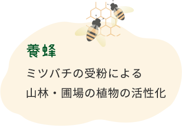 山林にミツバチが増える事で植物の受粉が活性化し、豊かな自然環境を取り戻したいという想いで取り組んでいます。