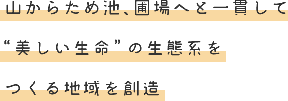 綺麗な山水の流れを保ち、綺麗な里山、豊かな土壌を増やしていく事で、自然の恵みが溢れる地域づくりを目指し、次世代へ財産として引継ぎたい。